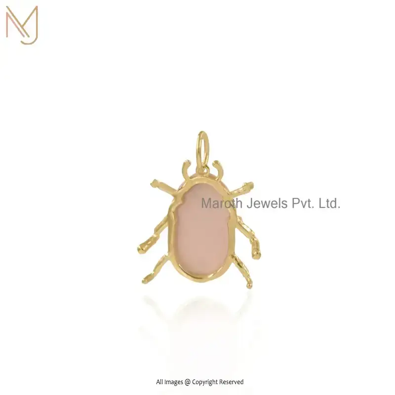 Wholesale 925 Silver Yellow Gold Plated Pink Opal Scarab Beetle Gemstone Pendant