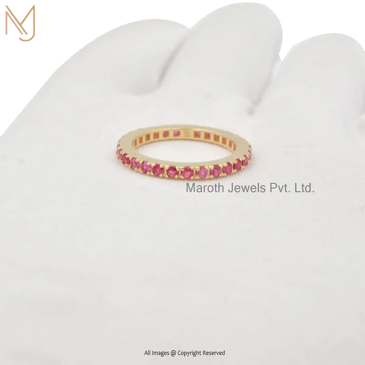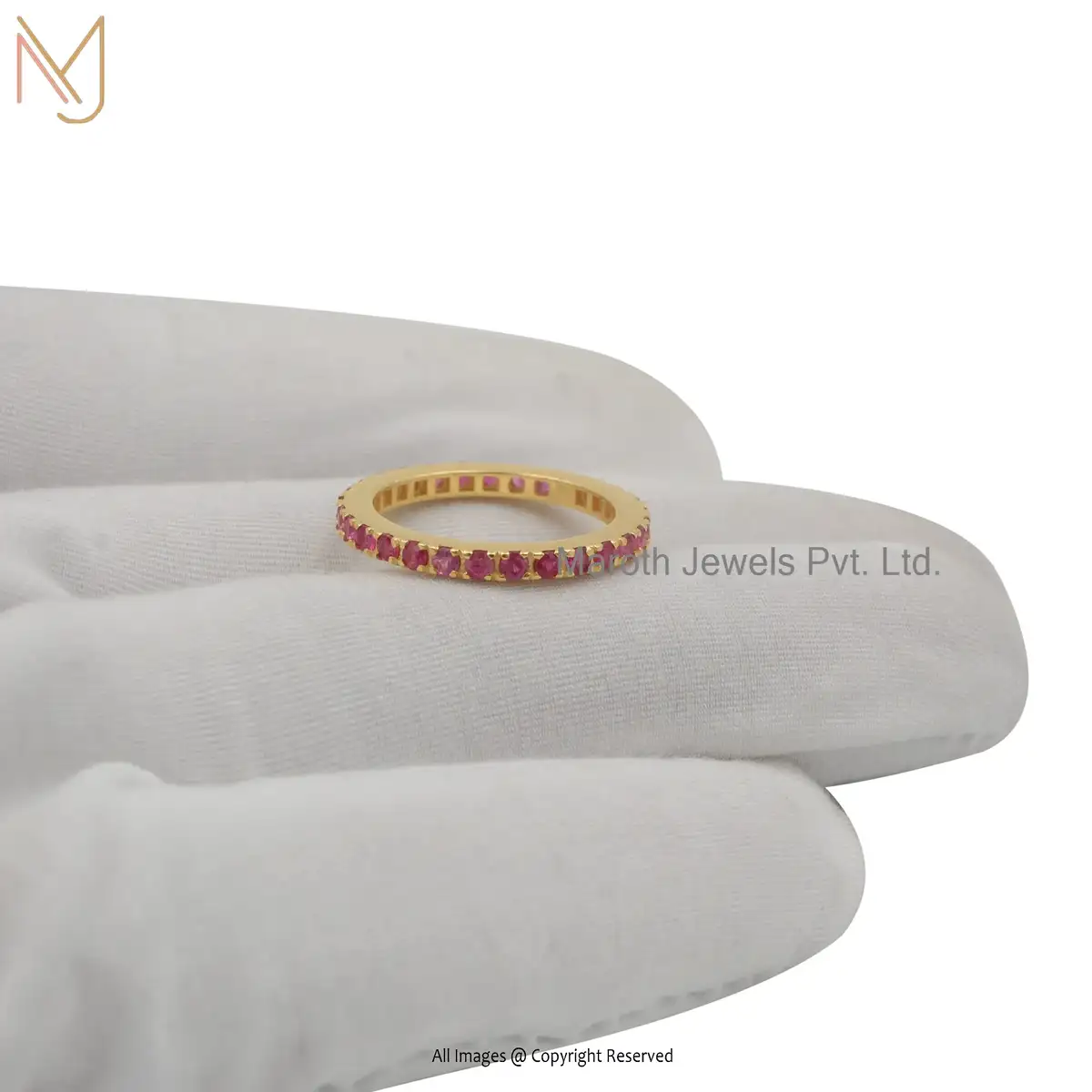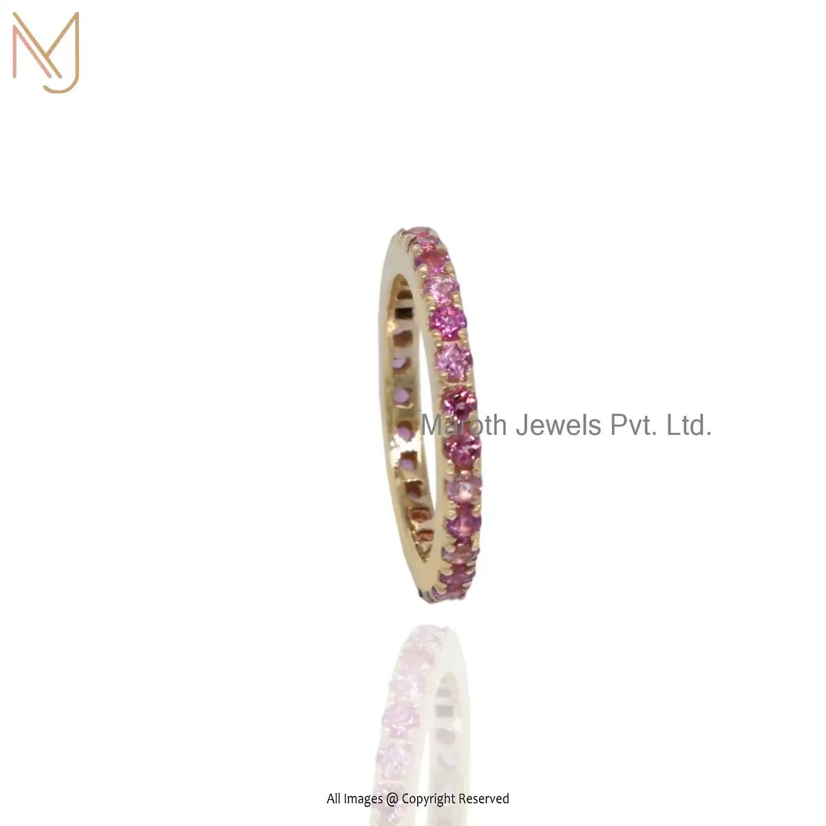 Wholesale 92.5 Silver Yellow Gold Plated Pink Sapphire Gemstone Band Ring