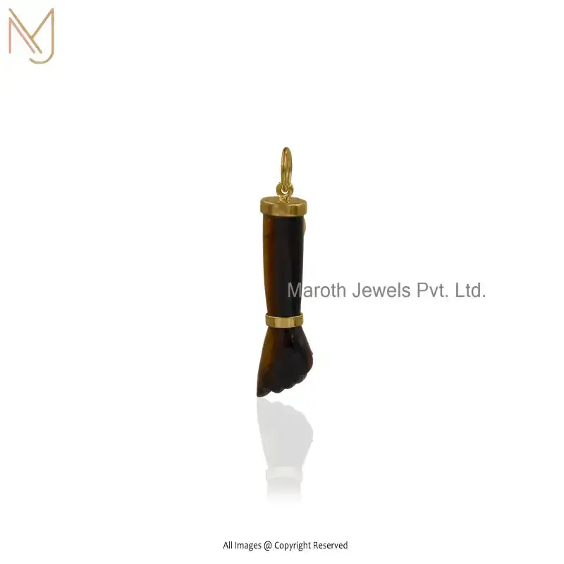 Wholesale 925 Silver Yellow Gold Plated Tiger's Eye & Amethyst Figa Pendant