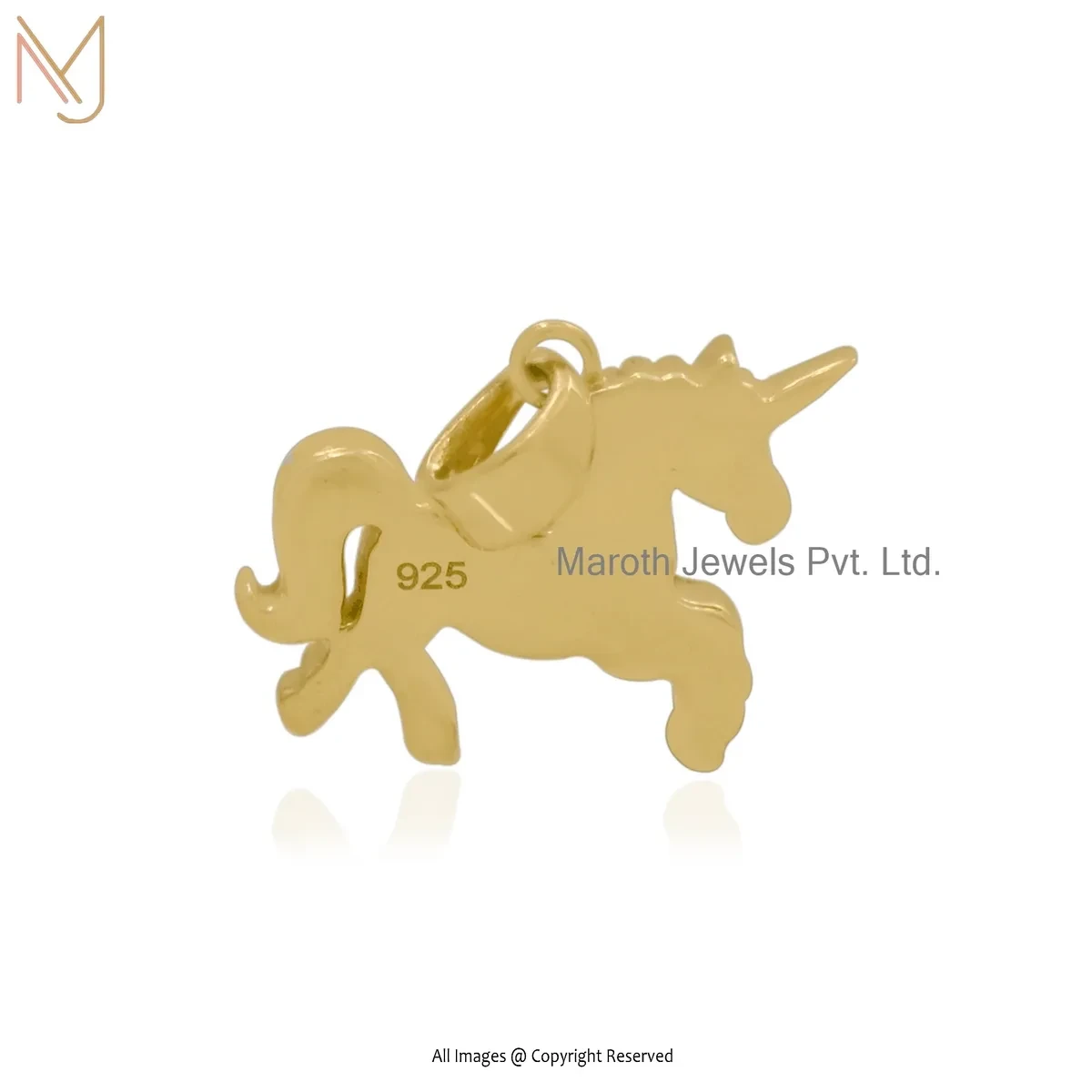 Wholesale 925 Silver Yellow Gold Plated Turquoise And Black Enamel Horse Pendant