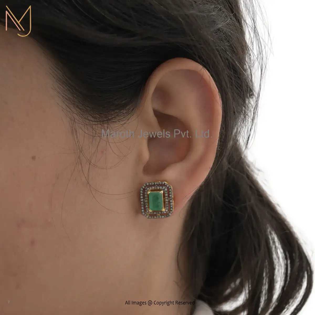 Wholesale 925 Silver Yellow Gold Rhodium Emerald and Diamond Kundan Earring