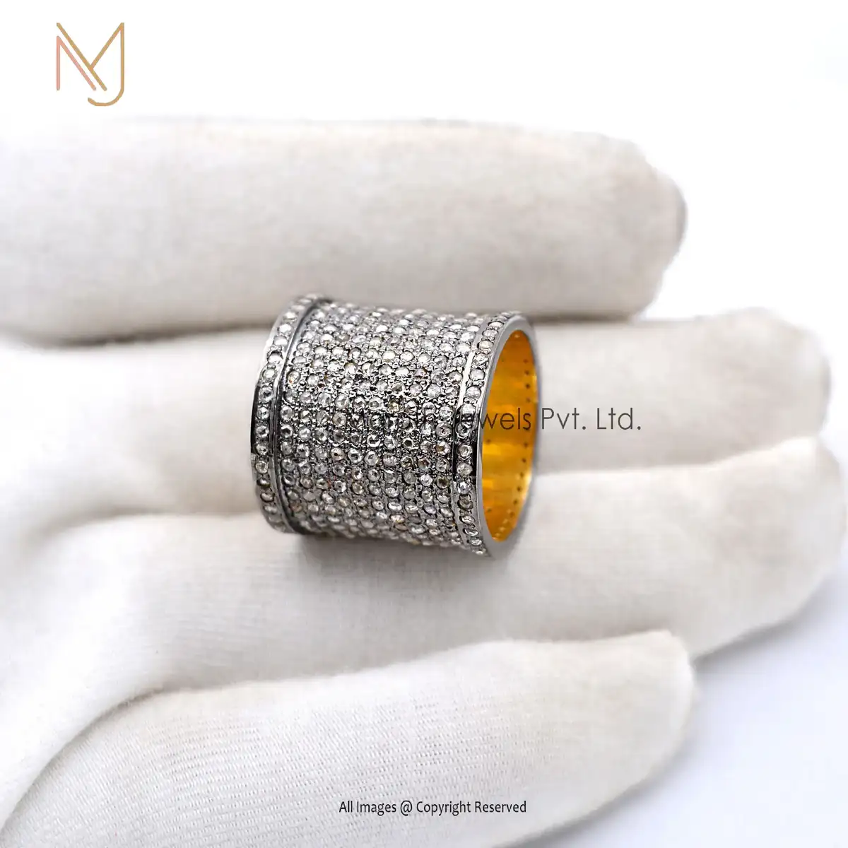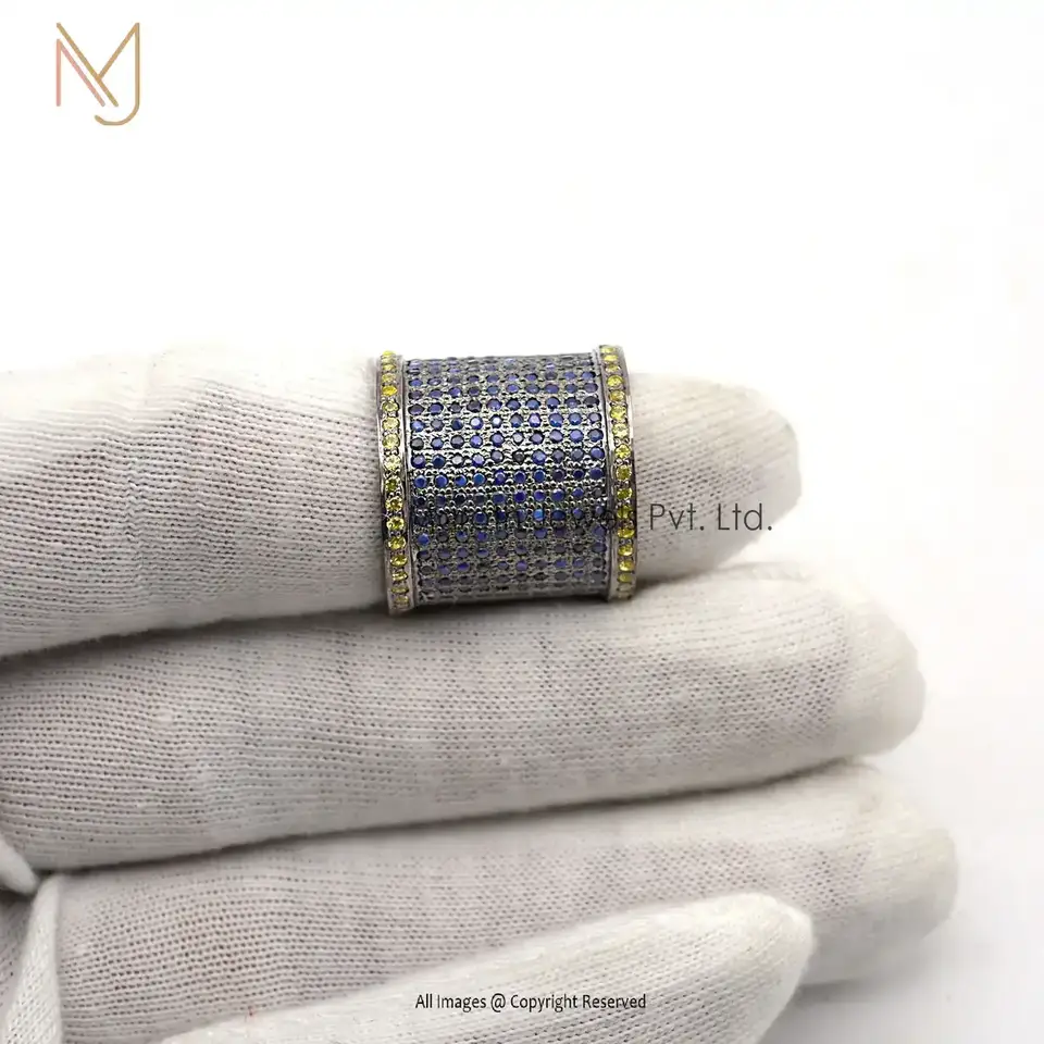 Wholesale 925 Silver Yellow Gold Rhodium Plated Blue Sapphire Gemstone Cigar Band Ring
