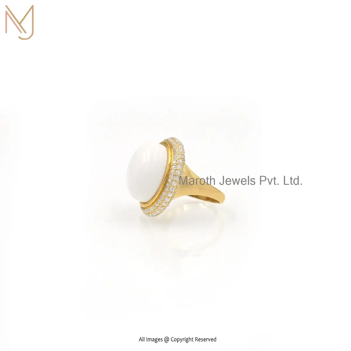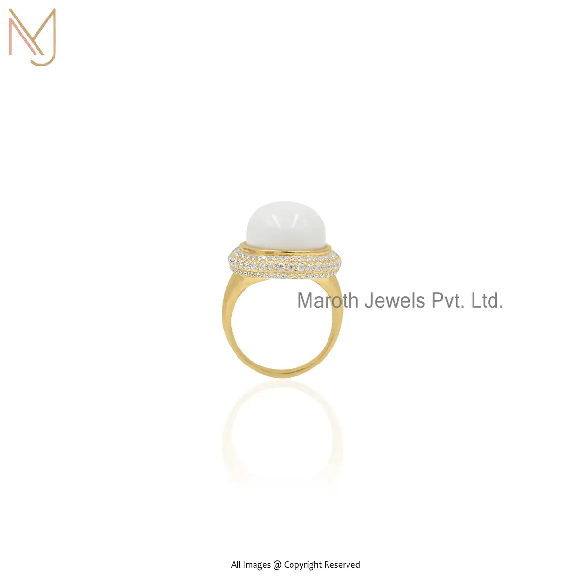 Wholesale 925 Silver Yellow Gold White Agate Moissanite Gemstone Ball Ring