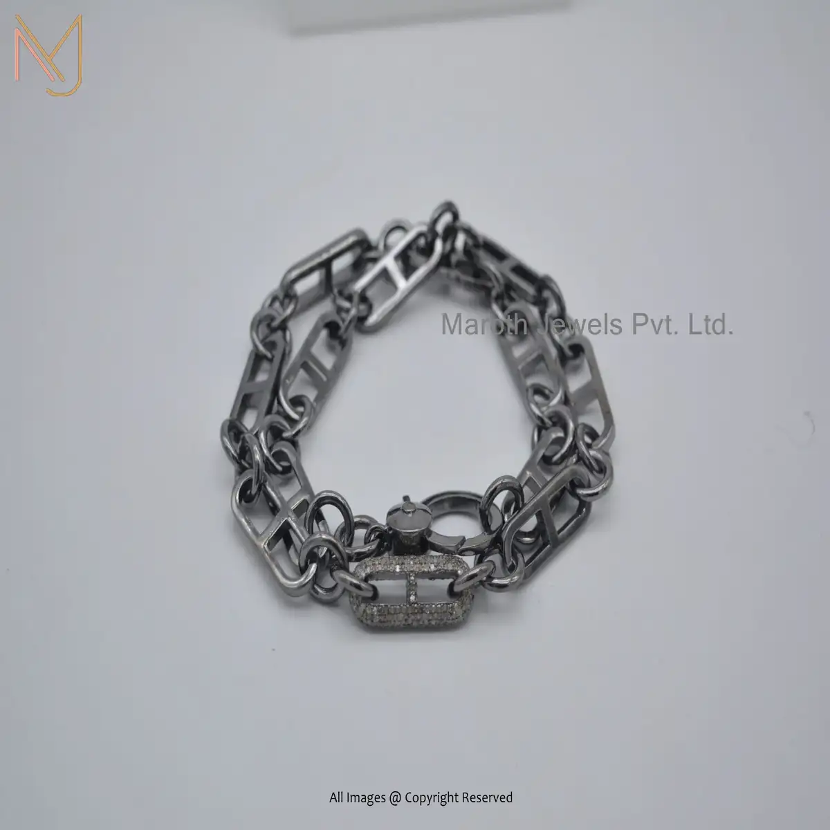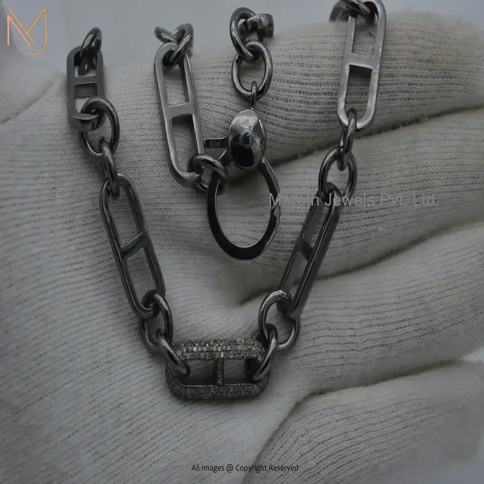 Wholesale 925 Sterling Silver RH Heavy Weight Link Chain Pave Diamond Necklace Jewelry