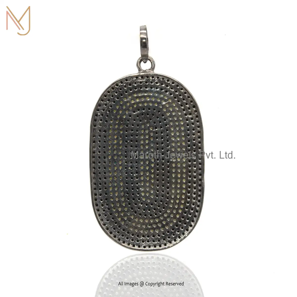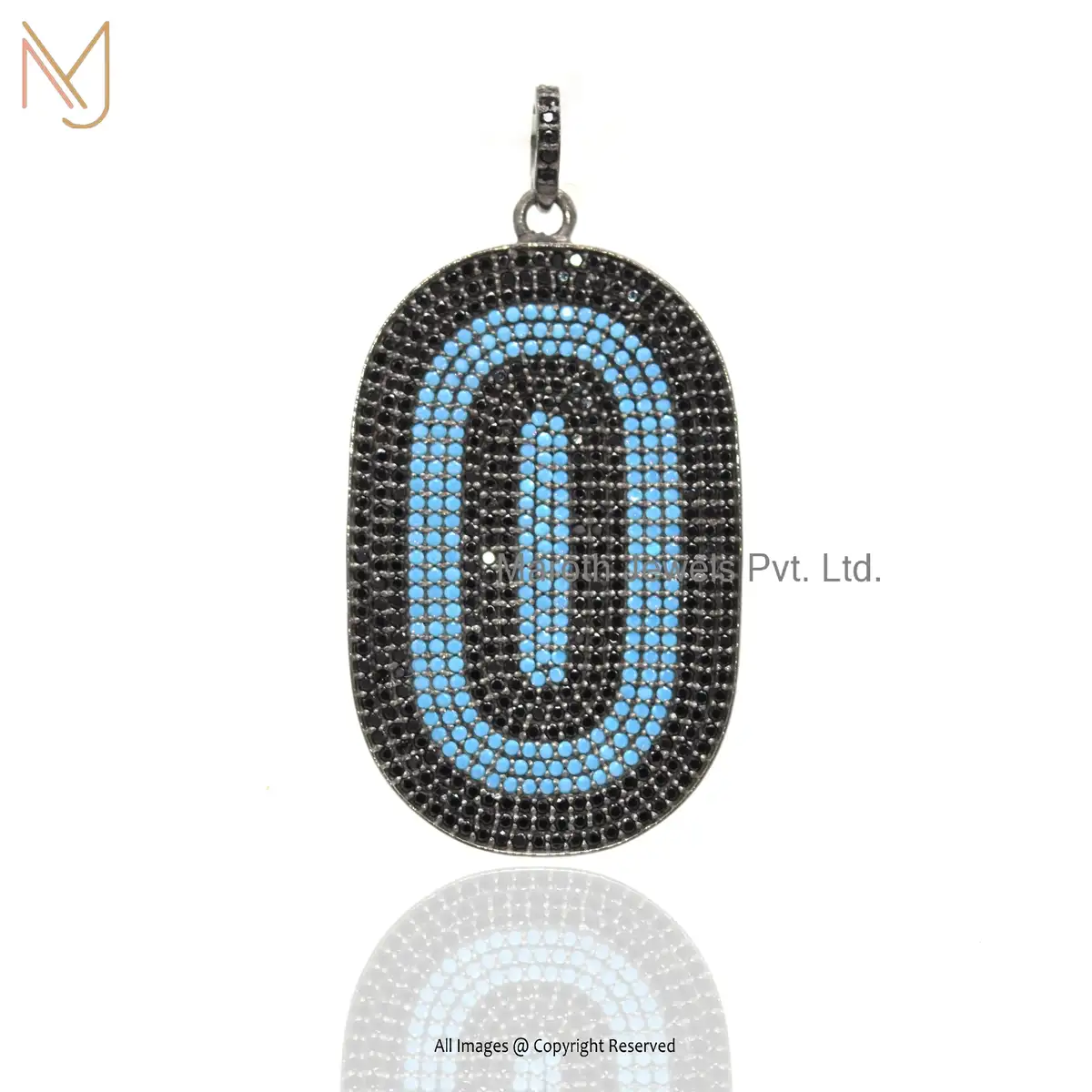 Wholesale 925 Sterling Silver Rhodium Plated Black Spinel & Turquoise Gemstone Oval Tag Pendant Jewelry