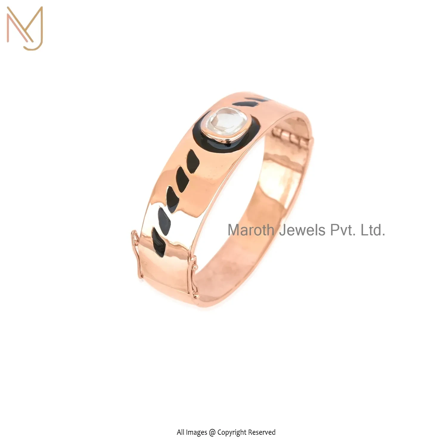 Wholesale 925 Sterling Silver Yellow Gold Plated Black Enamel And White Topaz UnCut Polki Jewelry Bangle