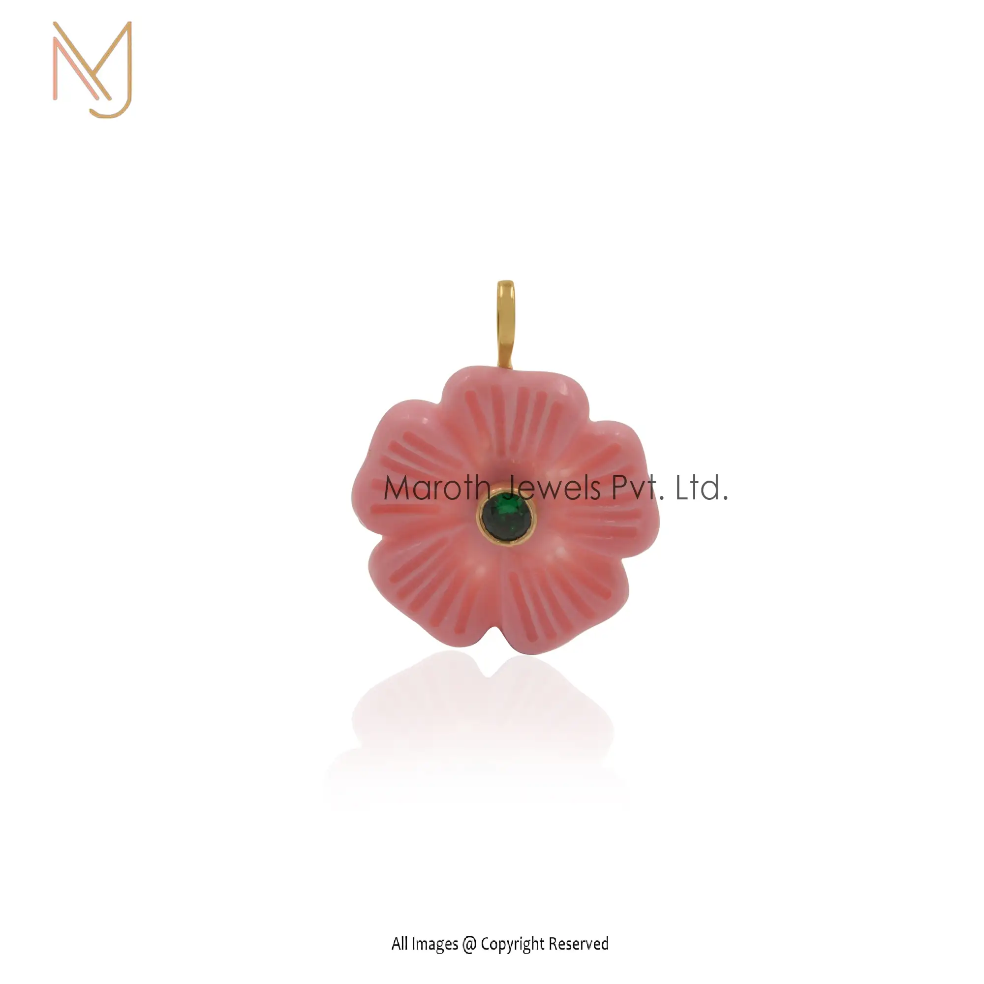 Wholesale 925 Sterling Silver Yellow Gold Plated Moonstone And Cubic Zircoina Gemstone Flower Pendant Jewelry