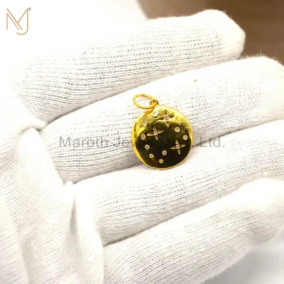 Wholesale 925 Sterling Silver Yellow Gold Plated Pave Diamond Pendant