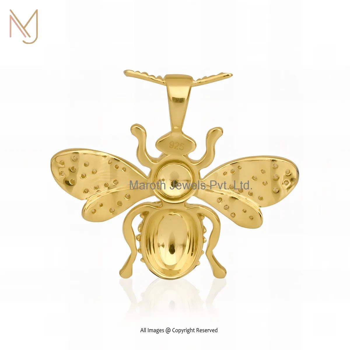 Wholesale 925 Sterling Silver Yellow Gold Plated White CZ Honey Bee Pendant