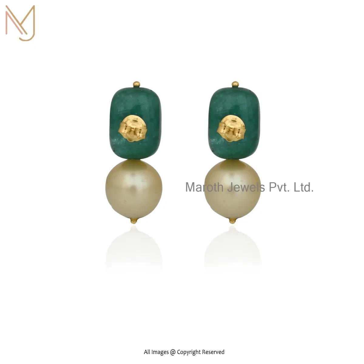 Wholesale 9K Yellow Gold Malachite & Pearl Drop Earring